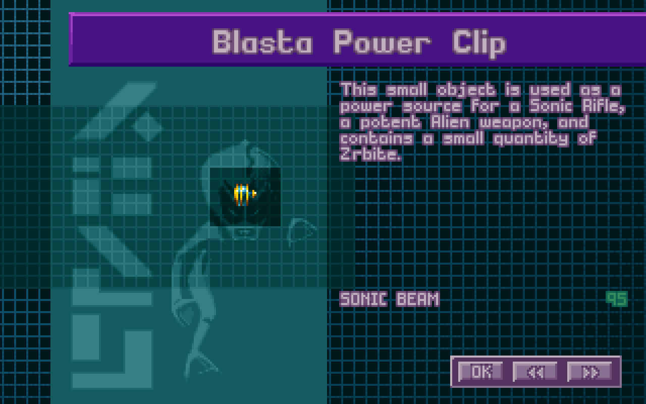 This small object is used as a power source for a Sonic Rifle, a potent Alien weapon, and contains a small quantity of Zrbite.