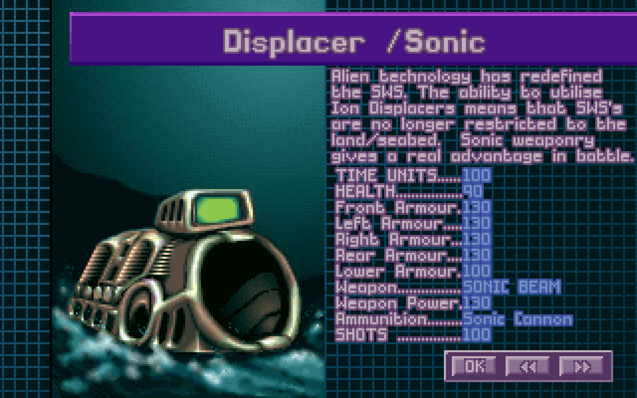 Alien technology has redefined the SWS. The ability to utilise Ion Displacers means that SWS's are no longer restricted to the land/seabed. Sonic weaponry gives a real advantage in battle.